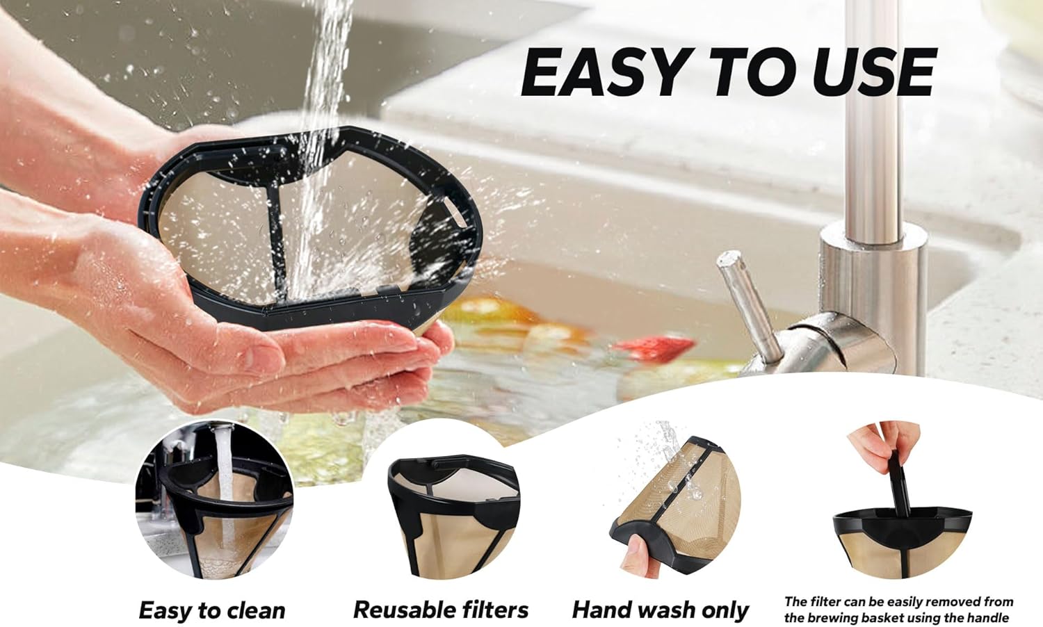 - EASY TO CLEAN: This coffee filter can be used alone or in conjunction with a paper filter. Attention, only hand wash (not suitable for machine wash),Use the handle to lift the filter out of the brew basket with ease.