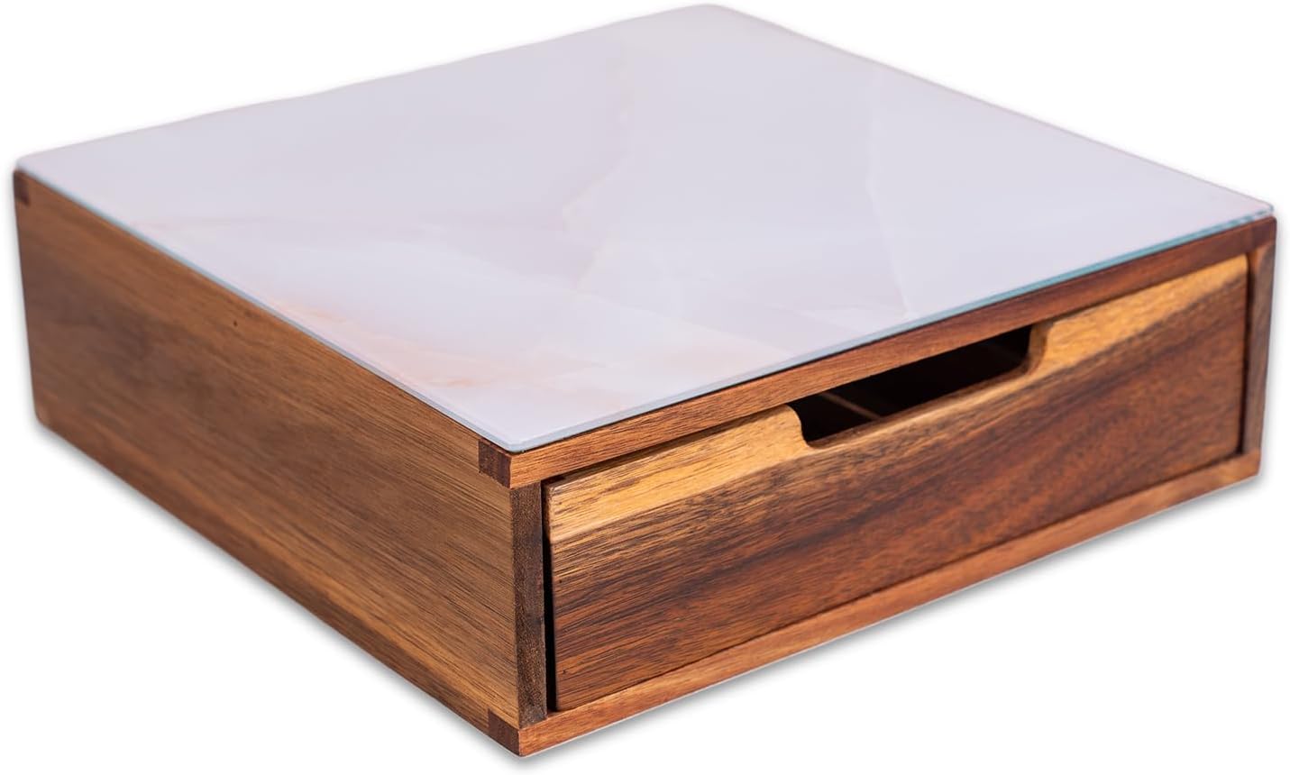 Tempered Glass and Natural Wood Coffee Pod Drawer Organizer - 20 Capsule Multifunctional K Cup Storage | Countertop Coffee Station Organizer for Home/Office (White)