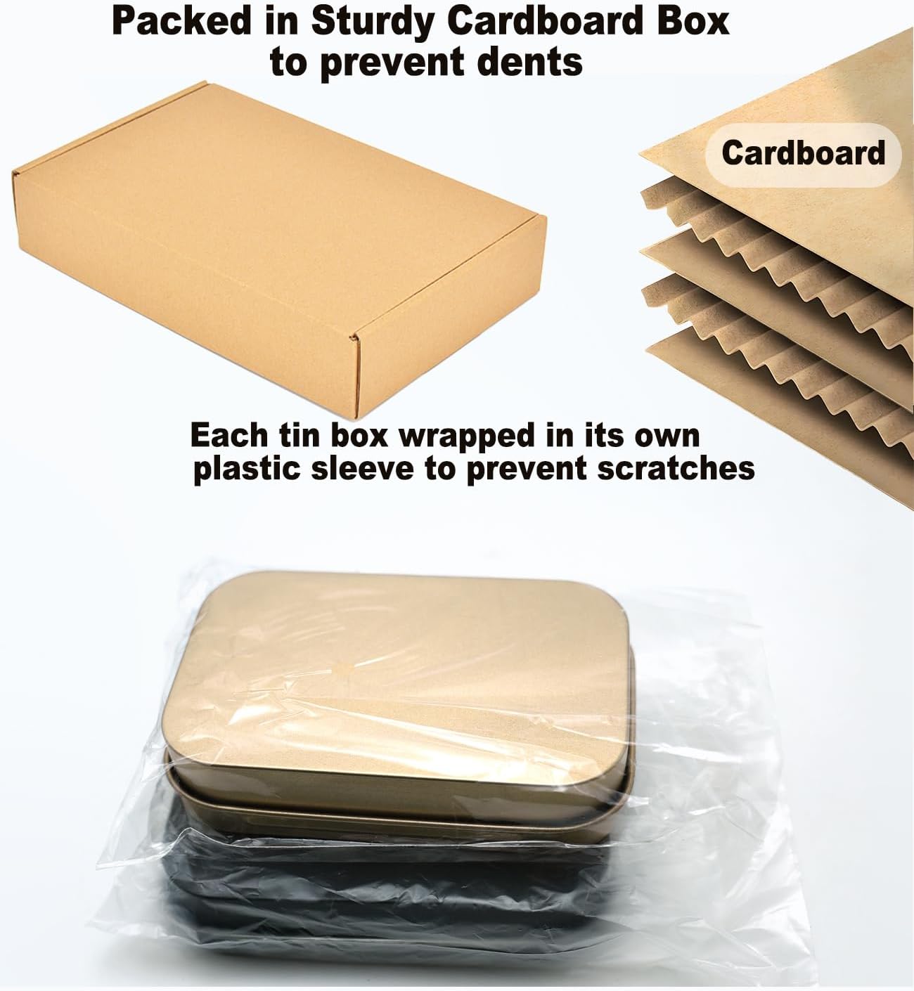 - 1.Perfect Dimensions: ,Each tin box measures 3.75 x 2.45 x 0.8 inches/9.5 x 6 x 2.2 cm, with a thickness of 0.23mm. This set includes blank tins,1 set label paper
