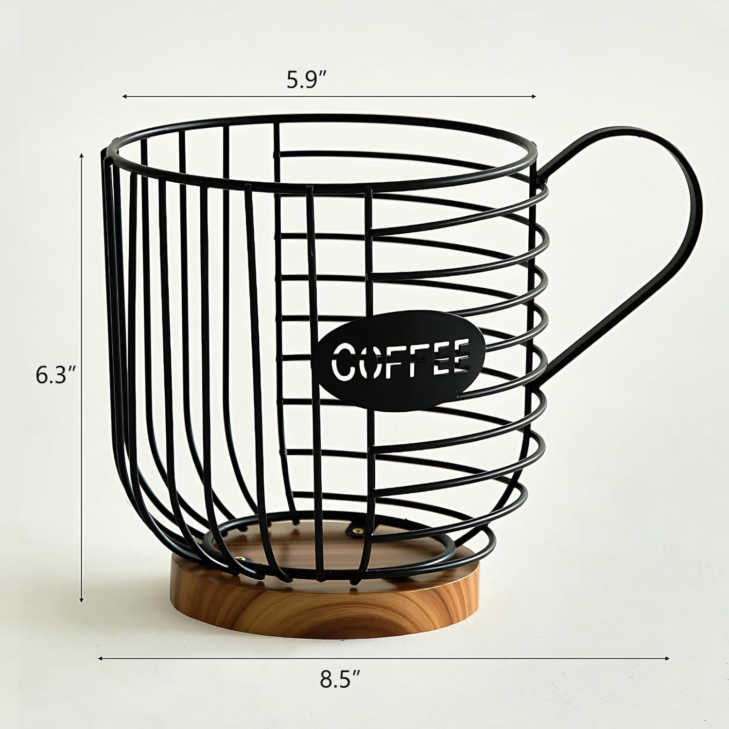 Coffee Pod Holder,Bar Accessories - Espresso Pod Holder - Large Capacity Black Wire Coffee Basket With Wooden Base