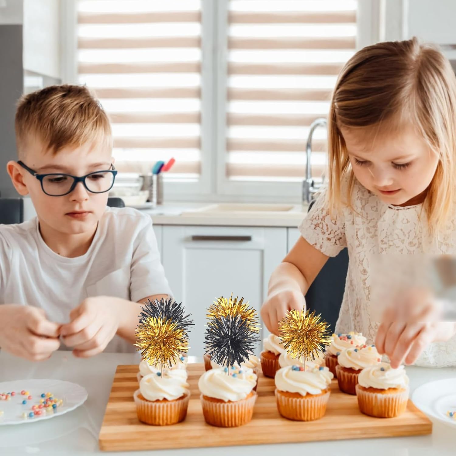 - Buy with Confidence ! Our foil firework cupcake toppers are intended for decoration only, please do not put them in oven or microwave. Please contact us in case of any problems, we will do all we can to make you satisfied.