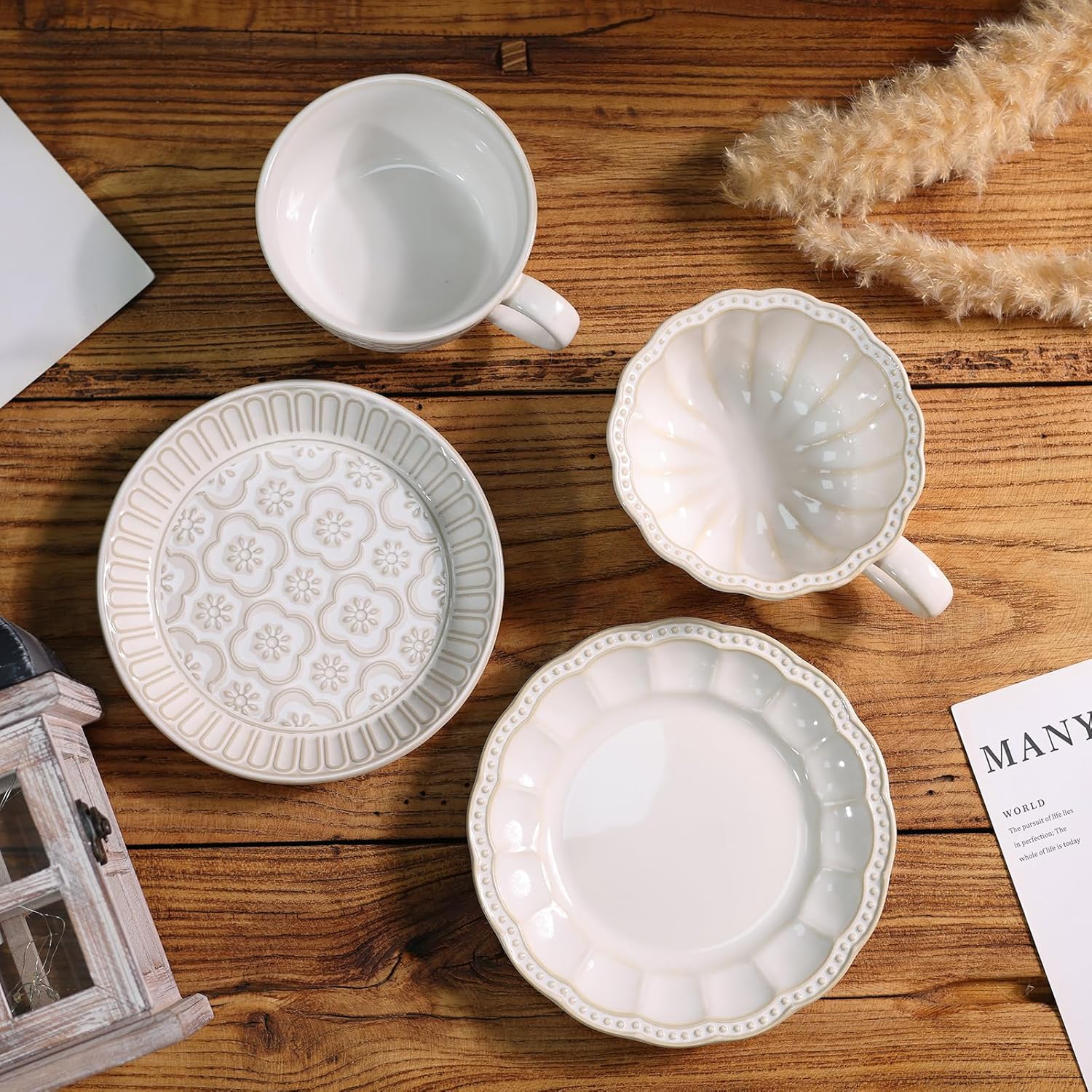 - Vintage Tea Cups with Embossed Floral Detailing: Bring a touch of nostalgia to tea time with these vintage tea cups. The raised floral and swirl motifs on both cup and saucer evoke classic countryside aesthetics. Perfect for enjoying tea, Turkish coffee, or adding a decorative touch to your farmhouse-style kitchen.