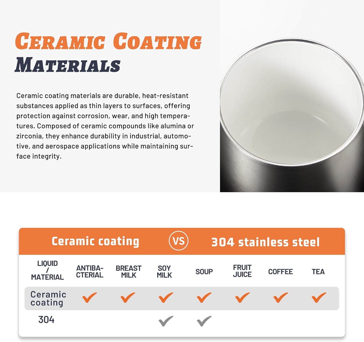 - Ceramic-Coated Interior – Freshness & Easy Cleaning in One The smooth ceramic-coated inner wall resists odors and stains, preserving the fresh taste of your drinks—no more lingering coffee or tea smells. Stubborn residues wipe away effortlessly with a quick rinse, so your tumbler stays clean and ready for your next sip, every time.