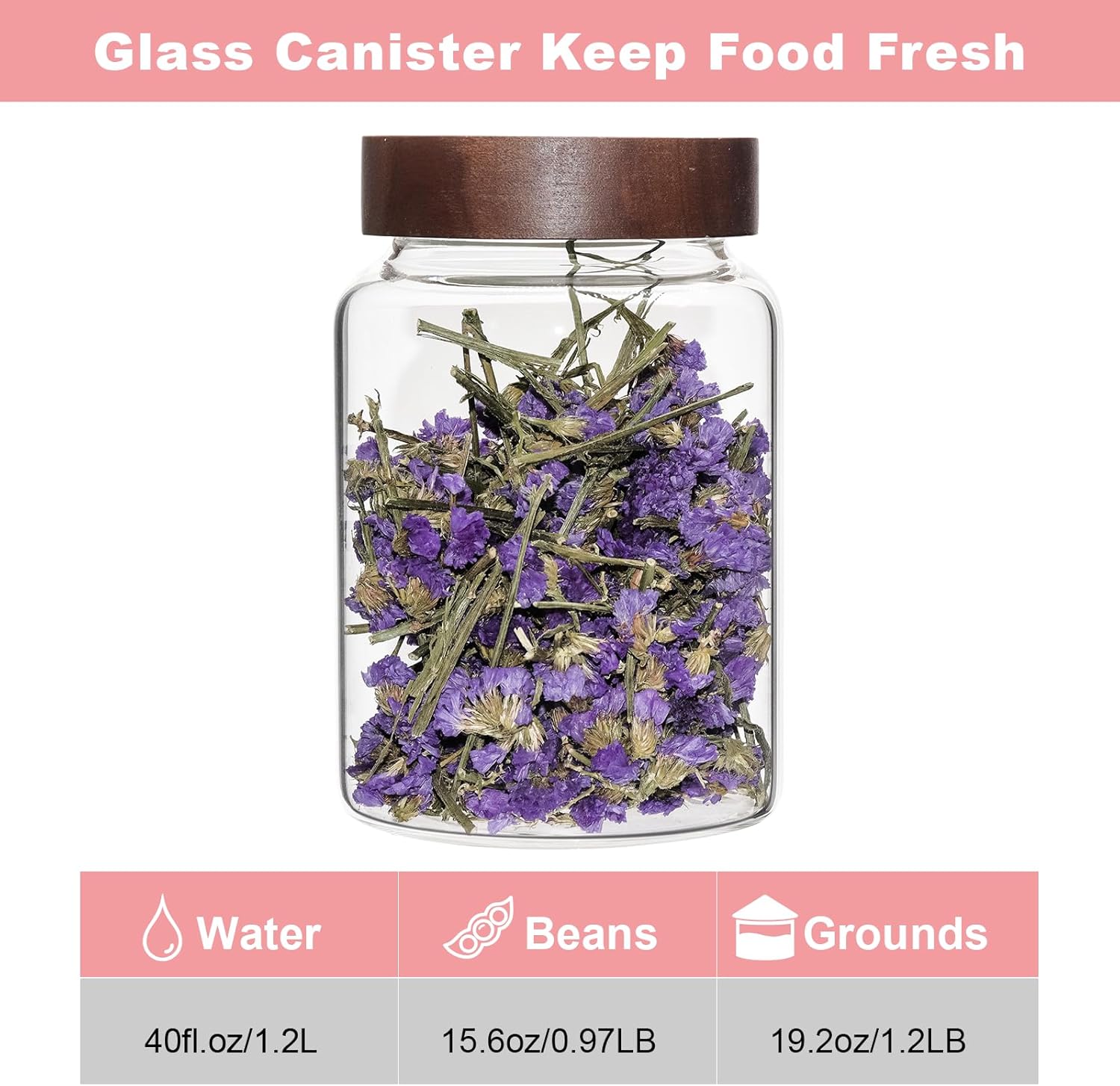 Glass Spice Jar Coffee Sugar Container Airtight Glass Jar Food Storage Canisters Bottle for Kitchen Seasoning Tea Herb Overnight Oats Bar Parfait Snacks (1200ml(40oz)-1 pack)