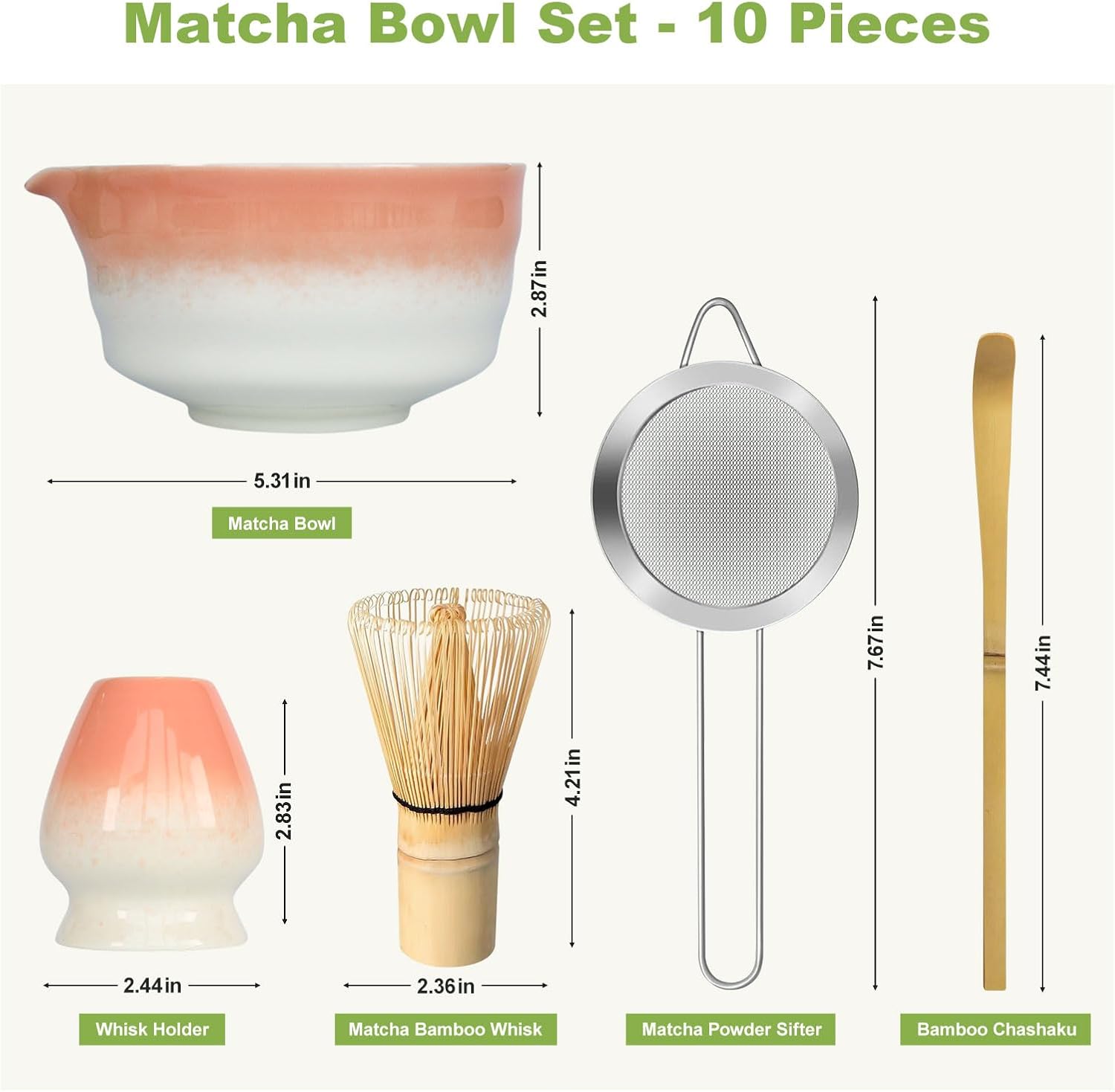 - Complete 5-Piece Matcha Kit: Includes ceramic chawan bowl with spout, handcrafted bamboo whisk, bamboo scoop, whisk holder, and stainless steel sifter for authentic matcha preparation