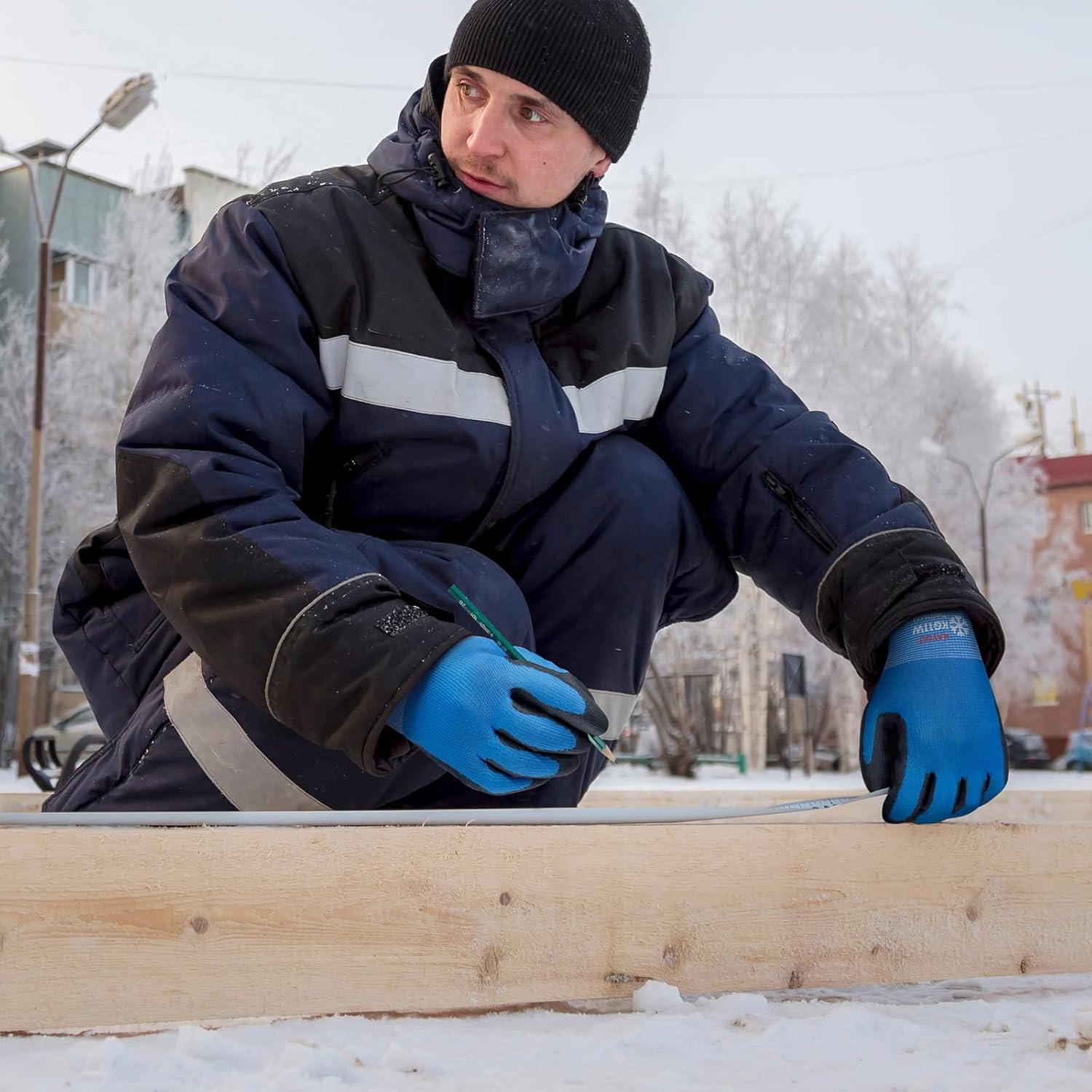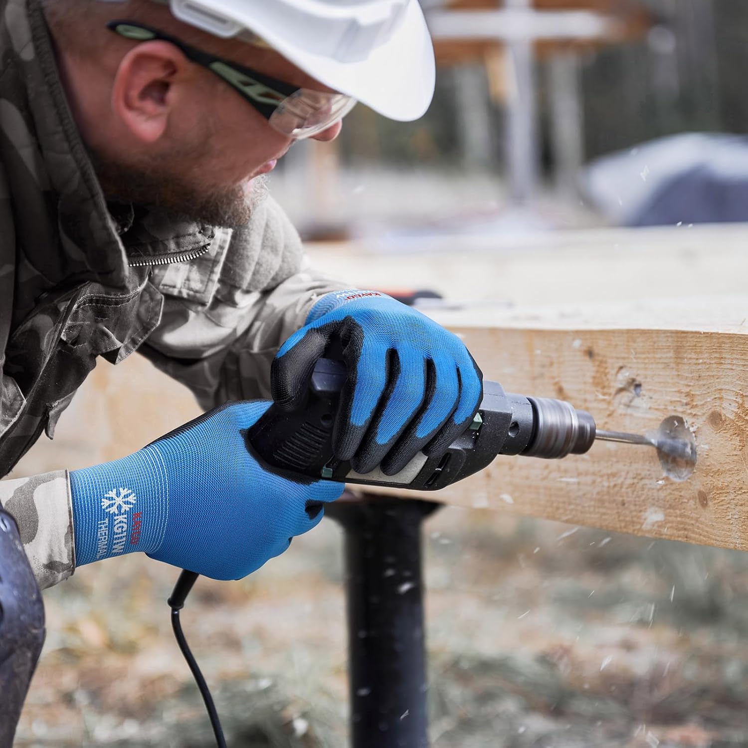 KAYGO Winter Work Gloves for Men and Women, 12 Pairs Thermal Insulated Safety Work Gloves PU Coated, Smooth Grip on Palm & Fingers,Ideal for Freezer Work,Blue,XL