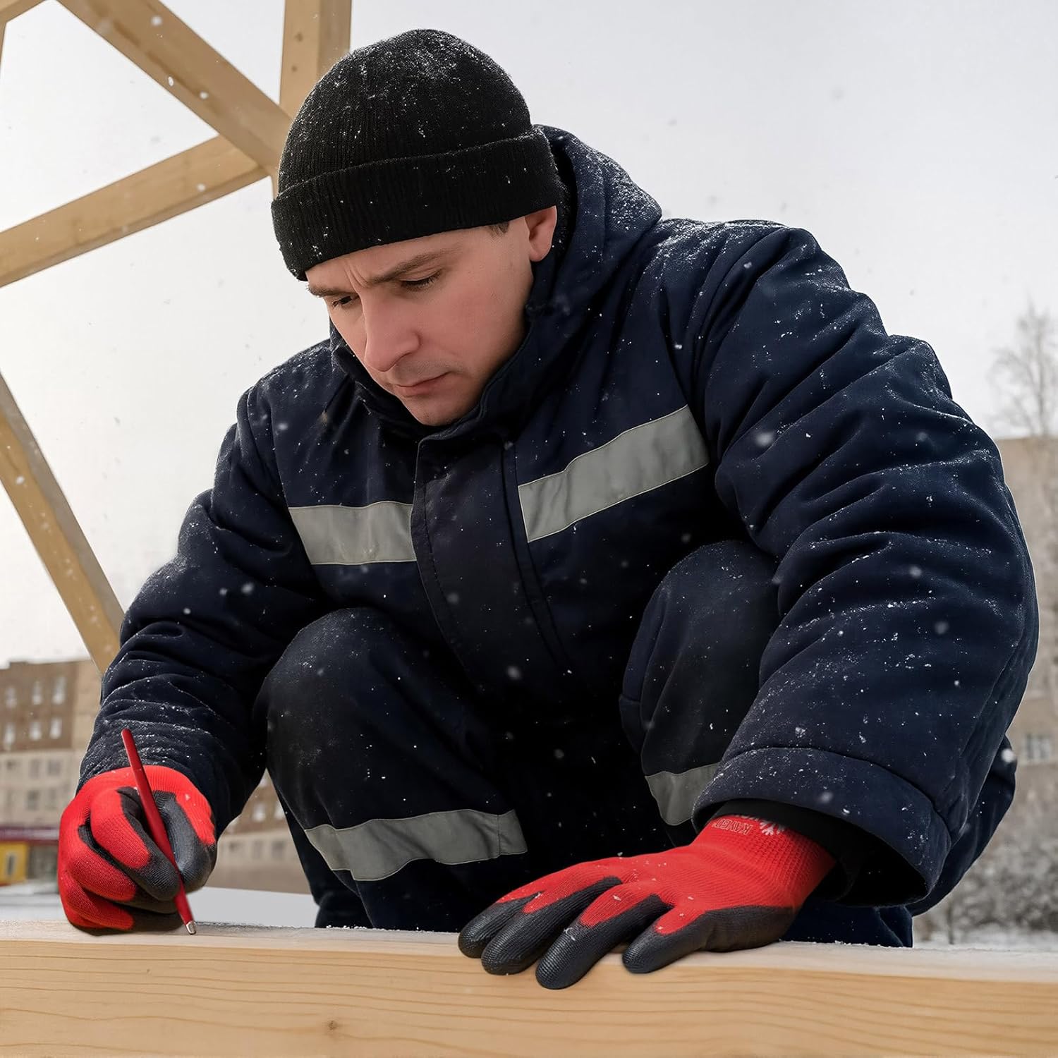 KAYGO Winter Work Gloves for Men and Women, 12 Pairs Thermal Insulated Safety Work Gloves PU Coated, Smooth Grip on Palm & Fingers,Ideal for Freezer Work,Red,M