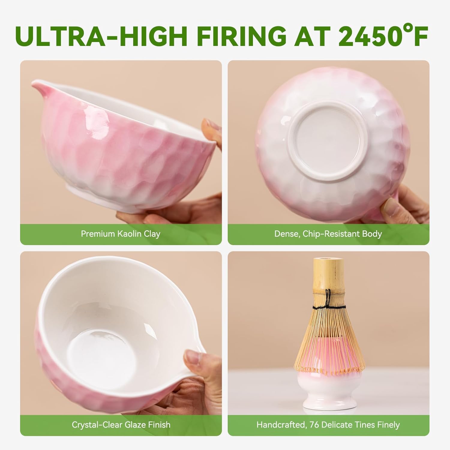 - 【Uncompromising Quality - XIYUANJI Matcha Whisk Set】 Crafted from premium kaolin clay and fired at 2450°F, our lead-free matcha bowl achieve exceptional density and a luminous glaze. Every matcha bowl set is a unique work of art - functional yet collectible.(Tea whisk is consumable and needs to be replaced when necessary)