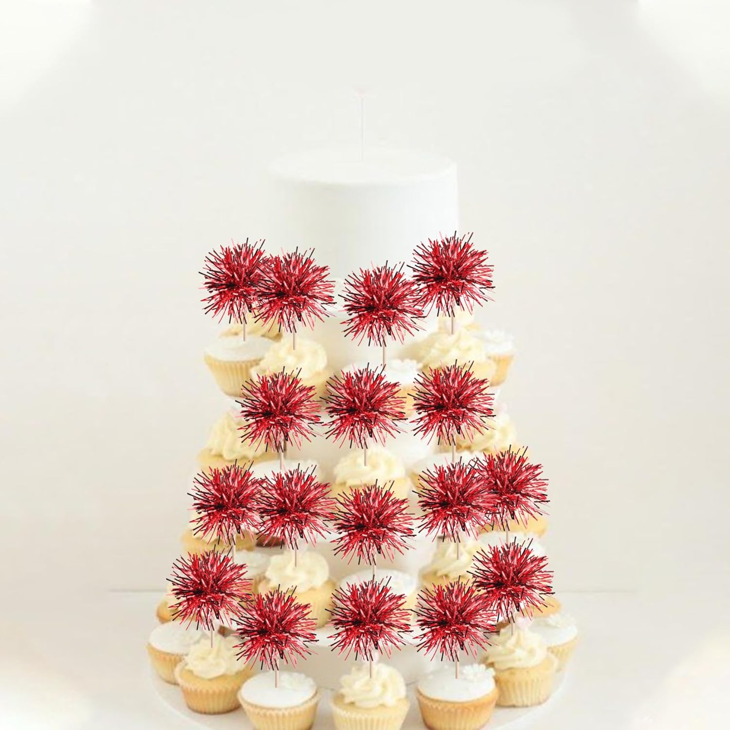 40 PCS Foil Firework Cupcake Toppers Sparkle Tinsel Cupcakae Picks Sparkler Fireworks Party Decorations Cocktail Fruit Toothpick for Birthday Wedding Graduation Party Decorations Supplies Red
