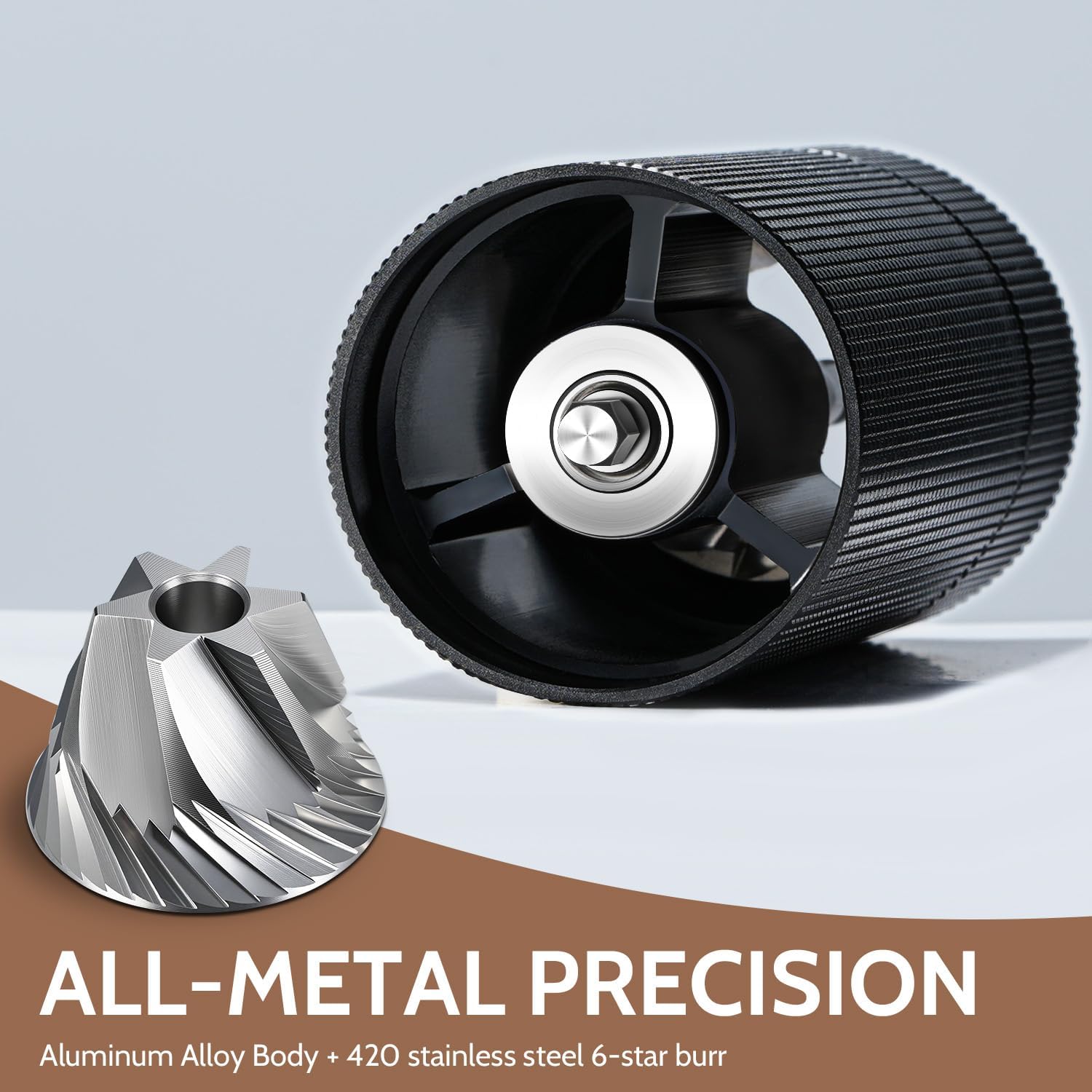 - Durable All-Metal Build: This portable coffee grinder features a high-strength aluminum alloy body with a single 420 stainless steel conical burr. Its all-metal design ensures stable grinding and enhanced durability, enough for daily use