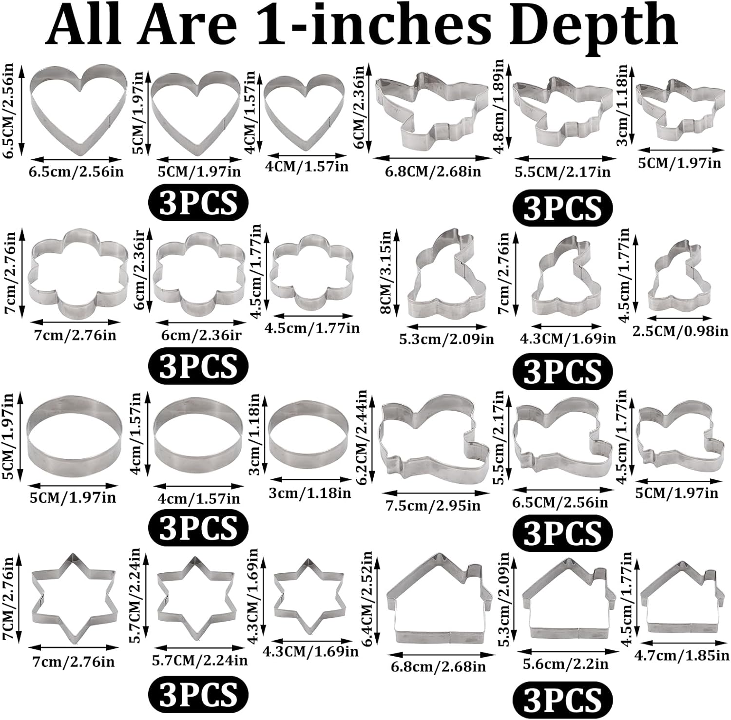 Metal Cookie Cutters Set 24 Pieces, Cookie Cutter -Heart, Star, Round, Flower, Animals for Valentine'S Day Christmas Holiday