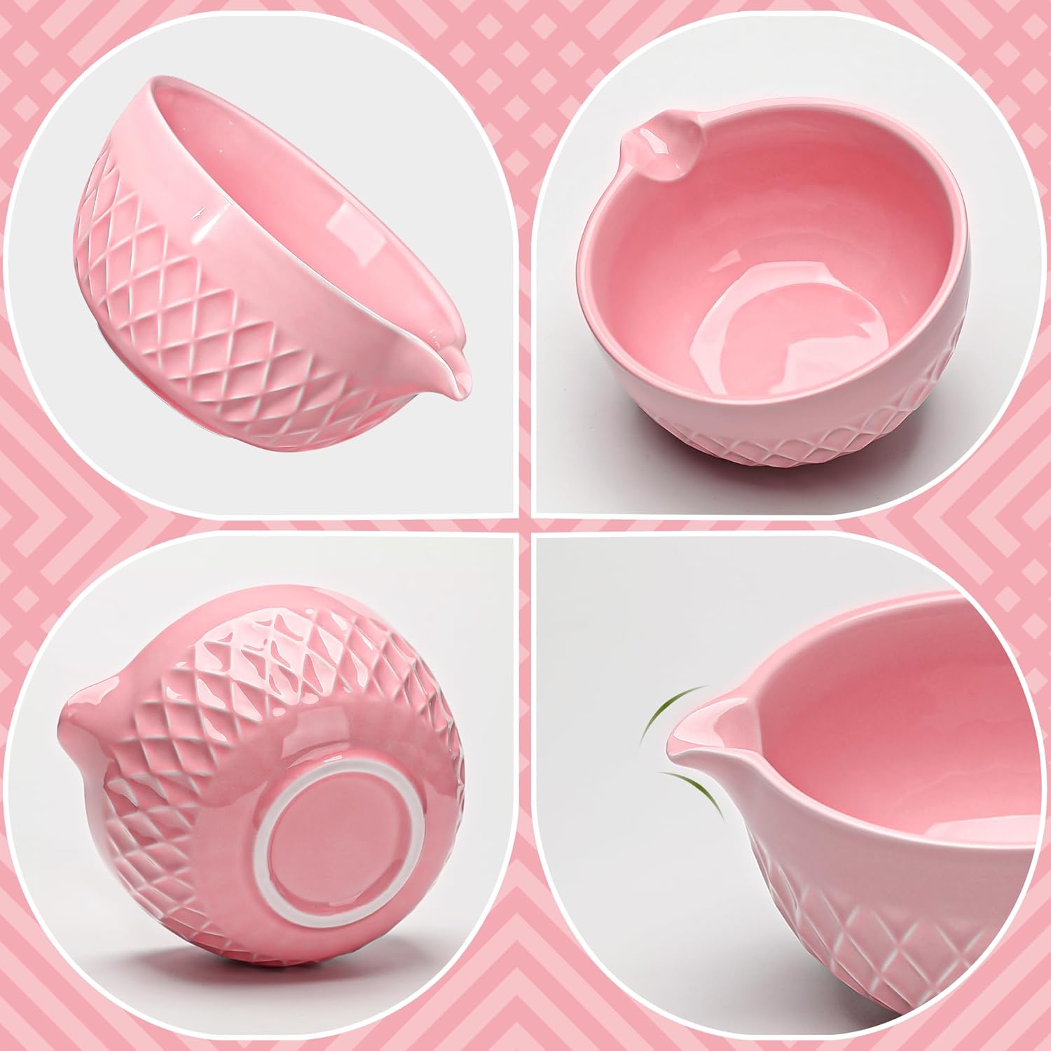 Matcha Whisk Set, 7 Pcs Matcha Kit, Ceramic Matcha Set Includes Matcha Bowl with Spout, Matcha Whisk and Holder, Bamboo Scoop, Scoop Rest, Sifter and Tea Towel (Cherry Blossom Pink)