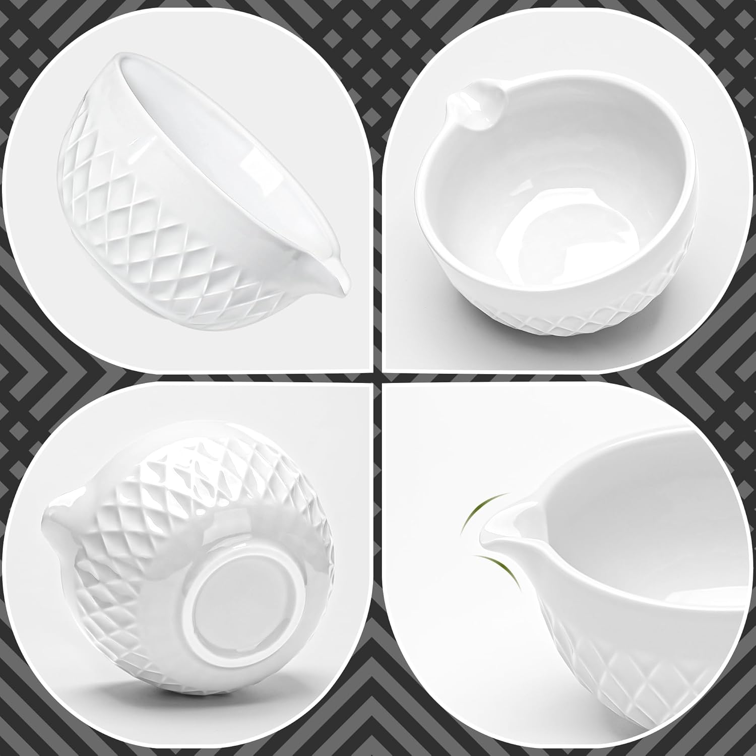 Matcha Whisk Set, 7 Pcs Matcha Kit, Ceramic Matcha Set Includes Matcha Bowl with Spout, Matcha Whisk and Holder, Bamboo Scoop, Scoop Rest, Sifter and Tea Towel (Ceramic White)