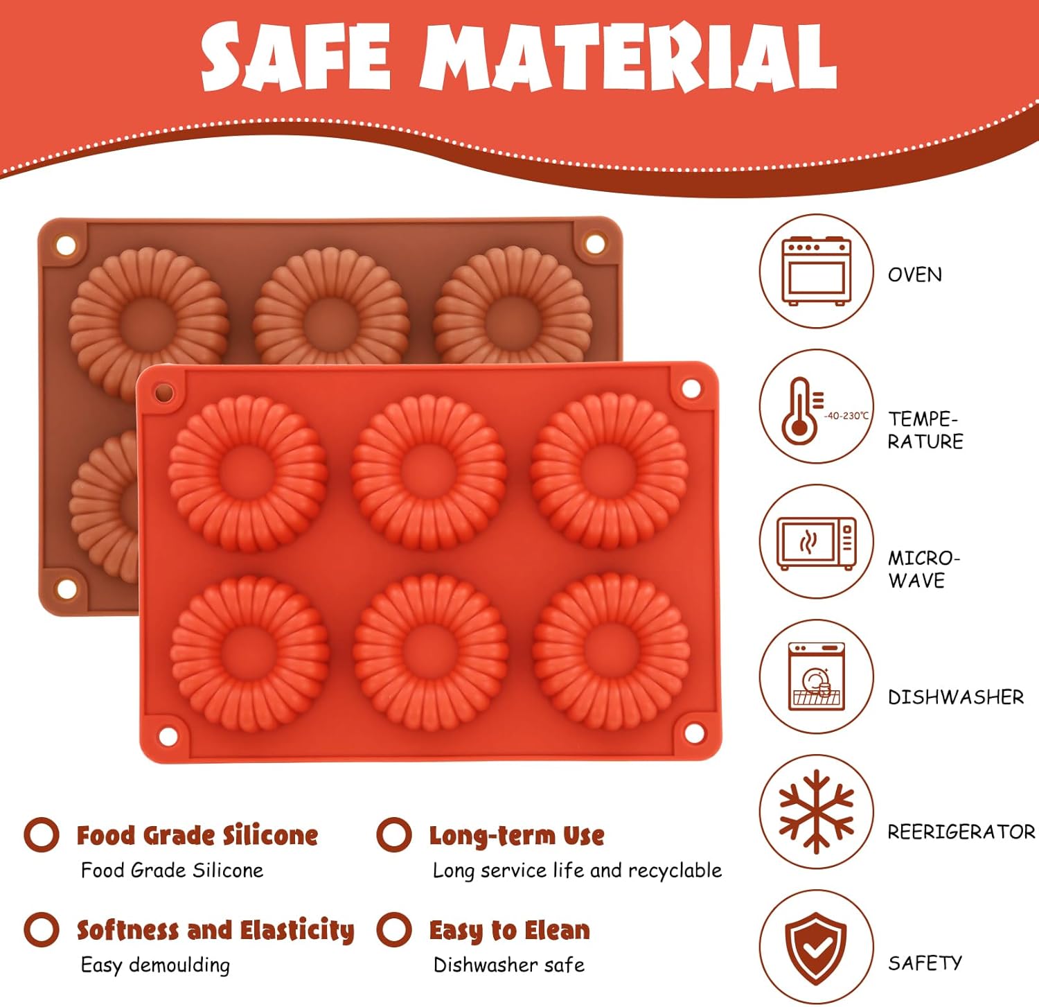 - <p><b>High-Quality Materials: </b>Made of food-grade silicone, silicone molds for baking is safe and non-toxic, and can be safely used in microwaves, ovens, refrigerators and dishwashers. Jello molds allows you to enjoy baking time with family and friends at any time.</p>