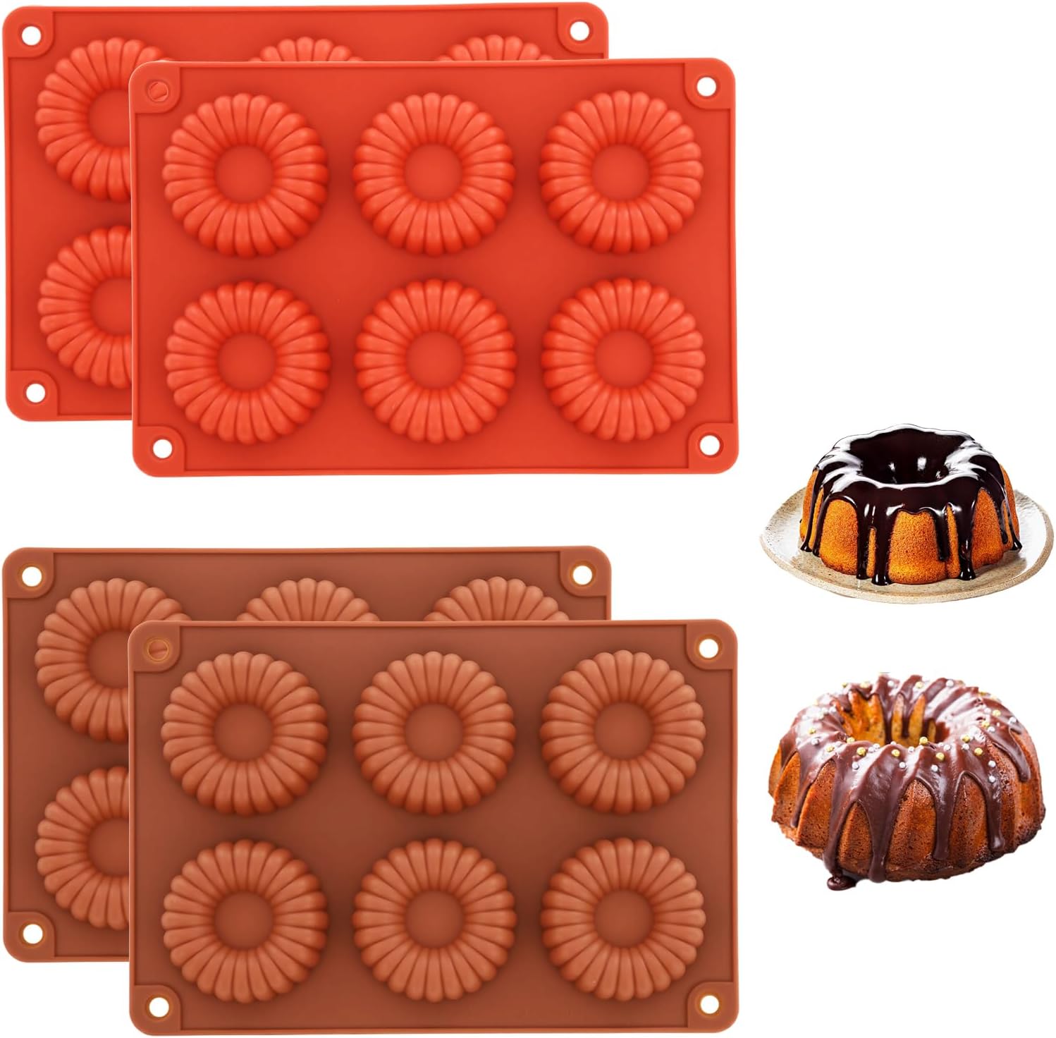 4 PCS Silicone Molds for Baking Non Stick Jello Molds with 6 Cavity Gelatin Mold for Baking Cupcakes Donuts Chocolate Muffins Brownies Jelly