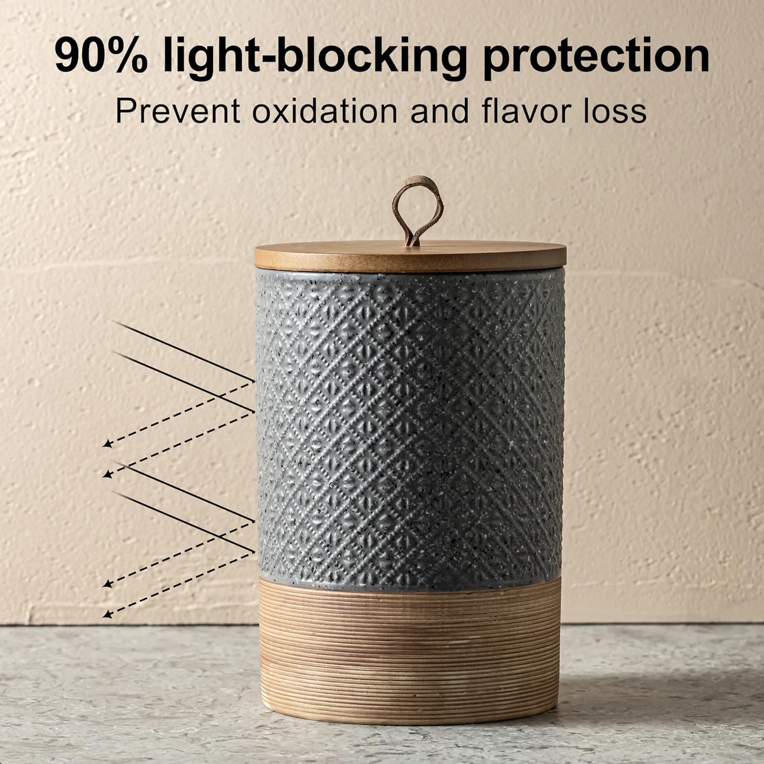 - Ultra-Tight Wooden Lid: The wooden lid with a strong rubber gasket creates an unbeatable airtight seal, keeping air, moisture, and odors far away from your coffee beans and ground coffee, locking in freshness for longer