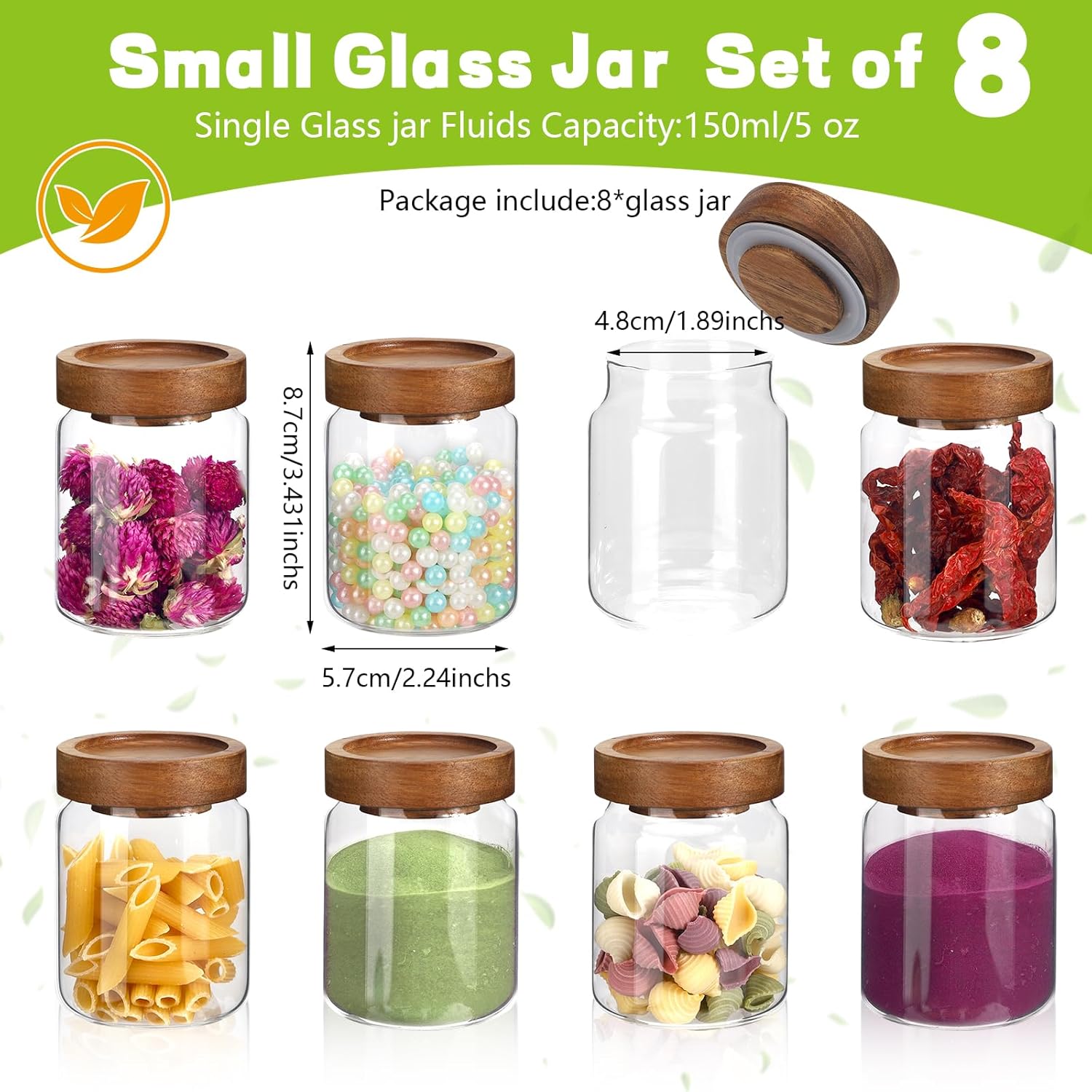 Glass Spice Jar Coffee Sugar Container Airtight Glass Jar Food Storage Canisters Bottle for Kitchen Seasoning Tea Herb Overnight Oats Bar Parfait Snacks (8 * 150ml(5oz))