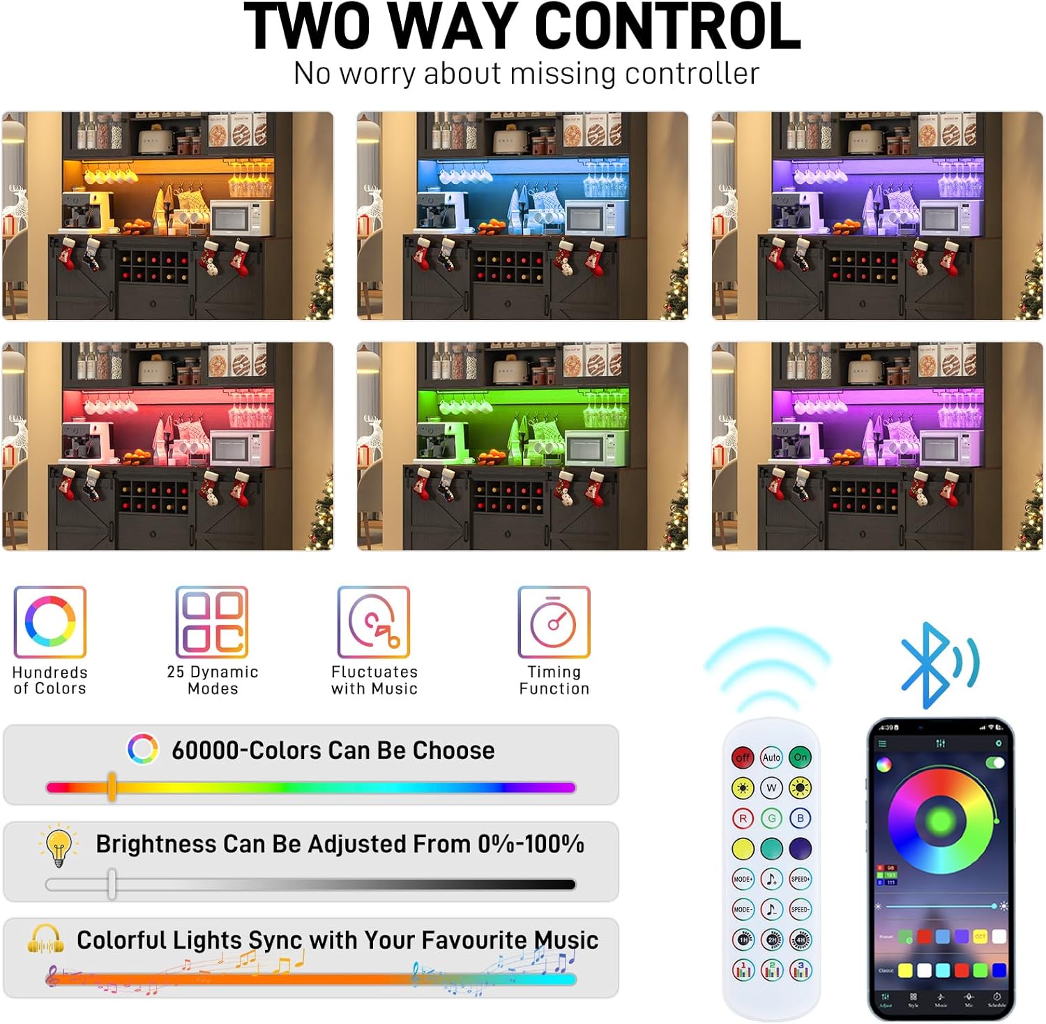 - 【Gorgeous LED Party Ambiance】Elevate your party with our large storage bar cabinet's LED lights. Control 6000 colors, 29 modes, and sync with music/mic via app or remote. Surprise your guests and create the ultimate party experience