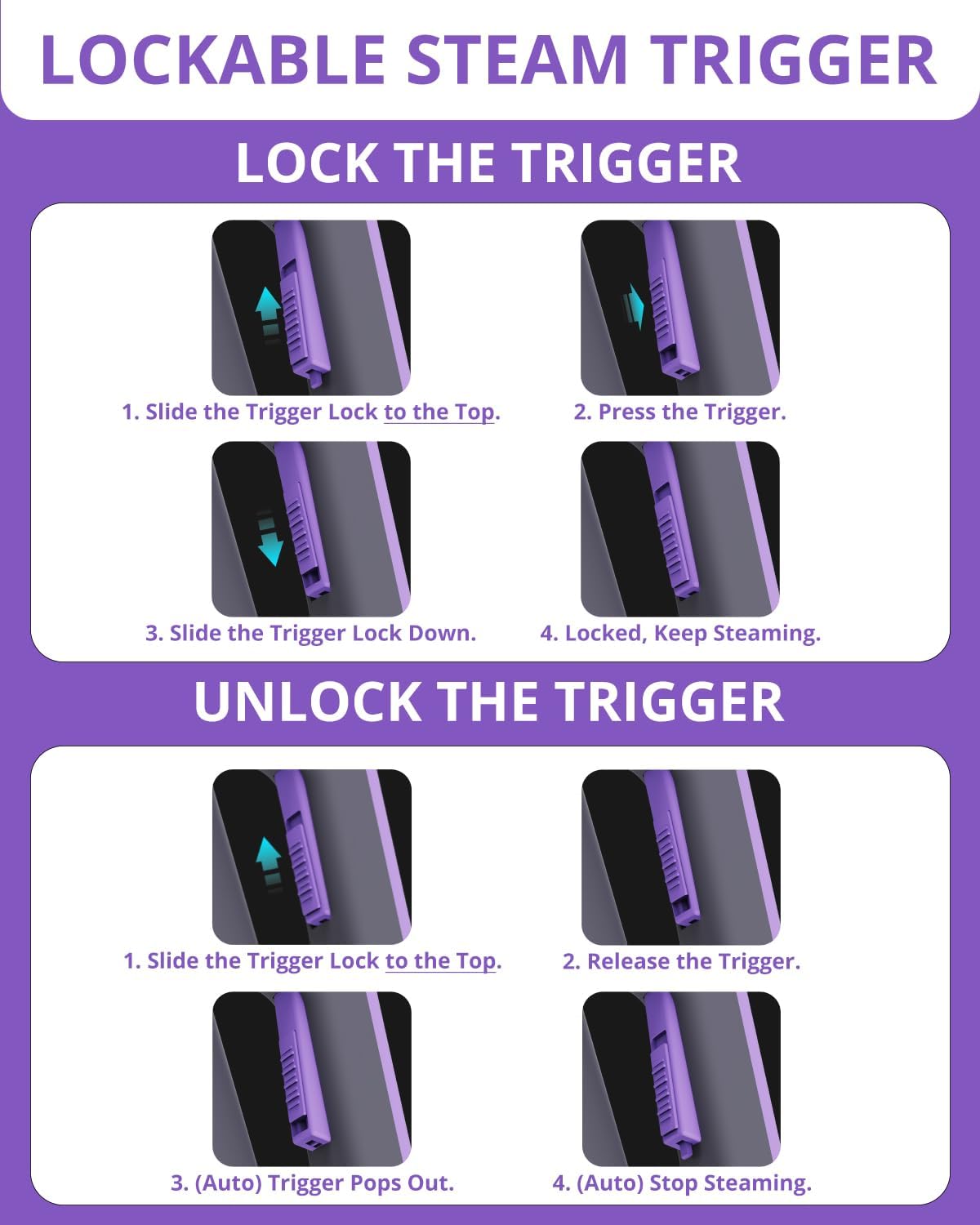 - [awasky Handheld Steam Cleaner]: Generates steam in just 10 seconds, reaching 230°F–260°F (110°C–126°C). Features adjustable dry/wet steam control and a large 750ml (25 oz) water tank with water-level window. The tank remains UNHEATED and NON-PRESSURIZED during operation, allowing instant, safe refills without cooling or waiting. The steam TRIGGER CAN BE LOCKS for continuous steam without constant pressing. Includes 14 accessories and a powerful 1200W to meet all your daily cleaning needs.