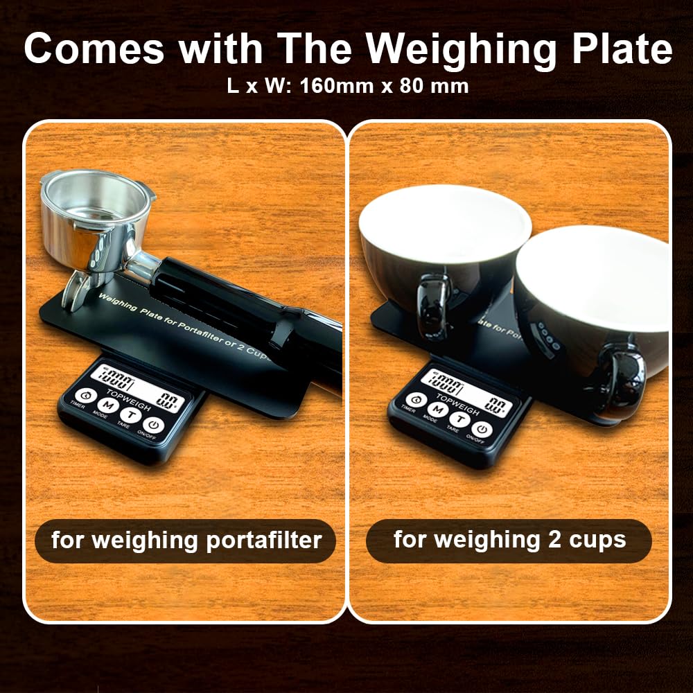 - Barista-Friendly Accessories. Includes a weighing plate that lets you measure two cups or your portafilter, making workflow faster and more efficient for home or café use.