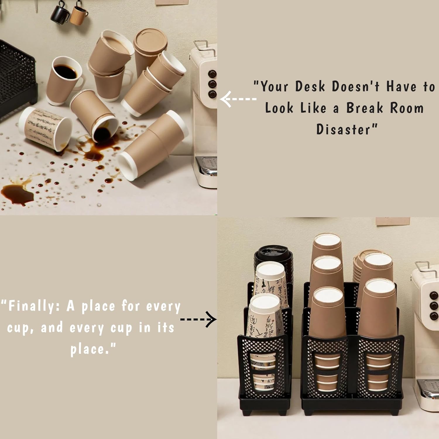 Cup Lid Dispenser and Dispenser Organizer Cup Display Stand,24 oz Plastic Coffee Cup Holder for Countertop,3Slots,Cup Display Stand on Restaurant,Bathroom,Kitchen,Coffee Shop