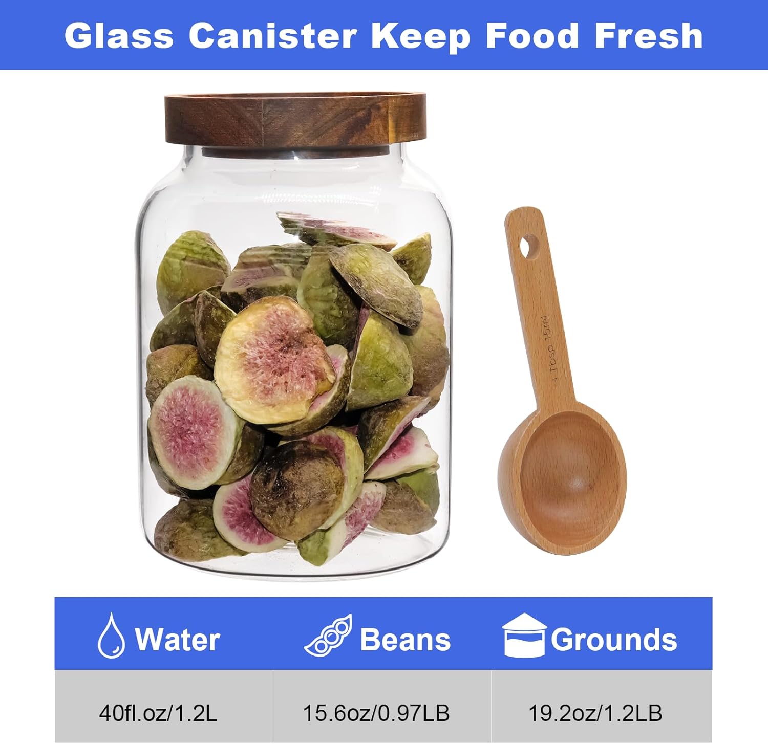 Vacuum Coffee Canister Glass Food Storage Jars With Airtight Lids Borosilicate Glass Coffee Canister Container for Coffee Beans & Grounds Tea Sugar Spices Kitchen (1200ml/40oz -1 pack-with spoon)