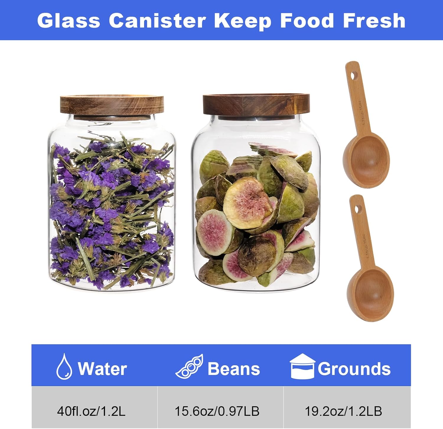Vacuum Coffee Canister Glass Food Storage Jars With Airtight Lids Borosilicate Glass Coffee Canister Container for Coffee Beans & Grounds Tea Sugar Spices Kitchen (1200ml/40oz -2pack-with spoon)
