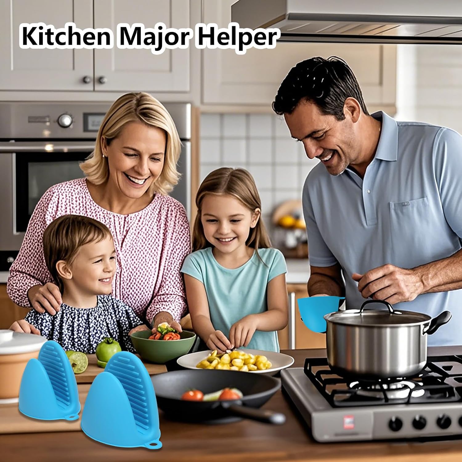 3 Pairs Oven Mitts Silicone Pot Holders Set Heat Resistant for Kitchen - Mini Silicone Oven Gloves Small Mittens Short Grips for Cooking & Baking, Blue