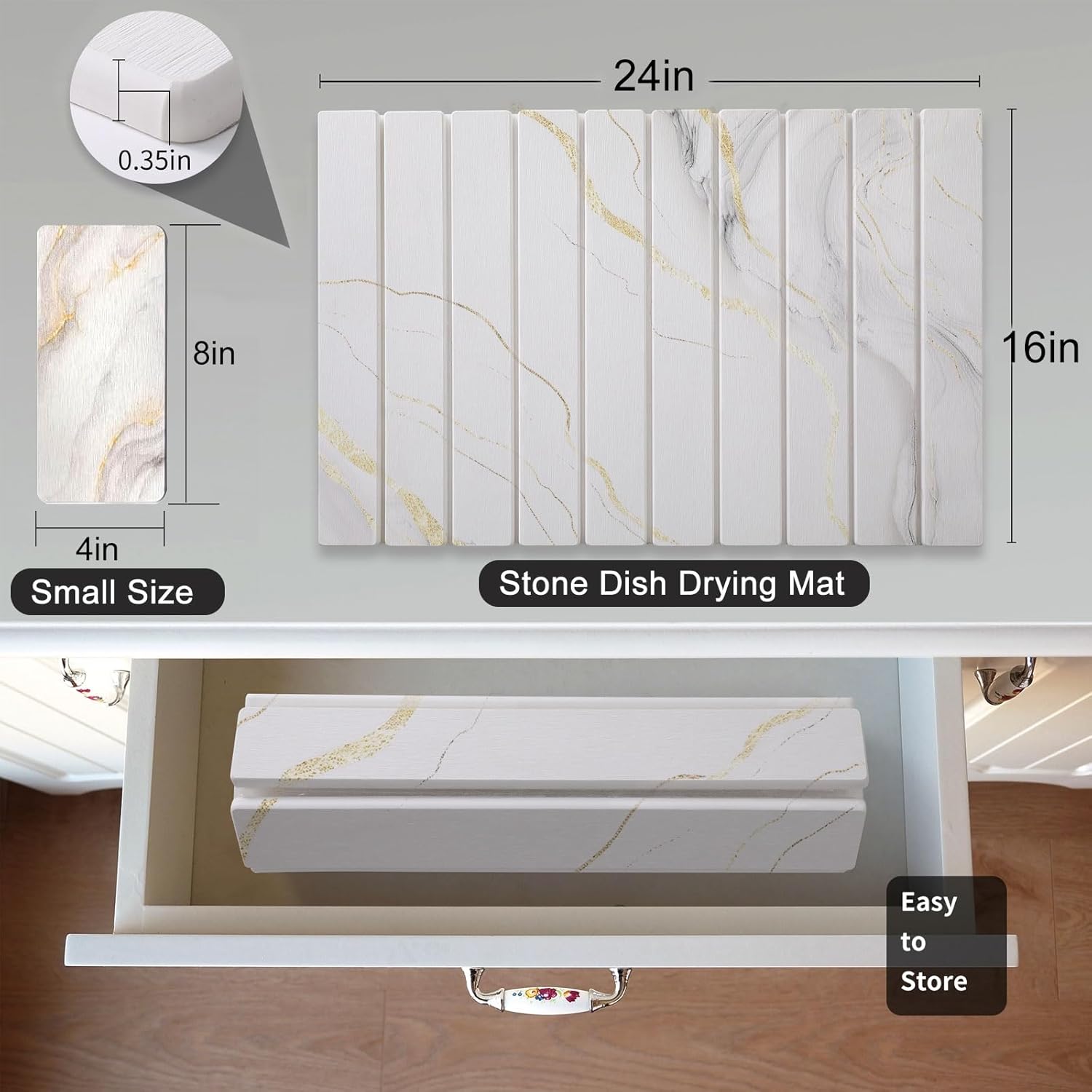 - 【Super Absorption & Quick-Drying Capability】Instantly Dry & Super Absorbent - Soaks up water droplets in seconds and dries fast itself, keeping your countertop dry and hygienic. No more waiting for dishes to air dry or dealing with soggy mats.