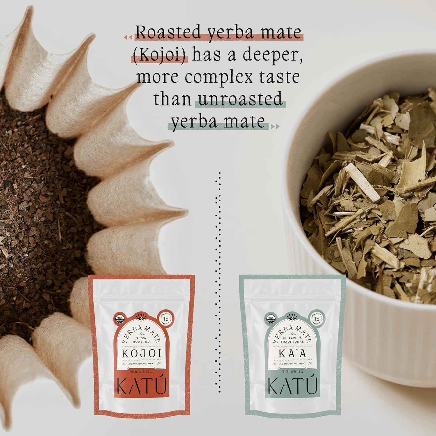 Katú Kojoi Tea Bags - Premium USDA Organic Yerba Mate Tea, Slow Roasted, Unsmoked, Air Dried, Loose-Leaf, Aged, Natural Energy - 15 Count