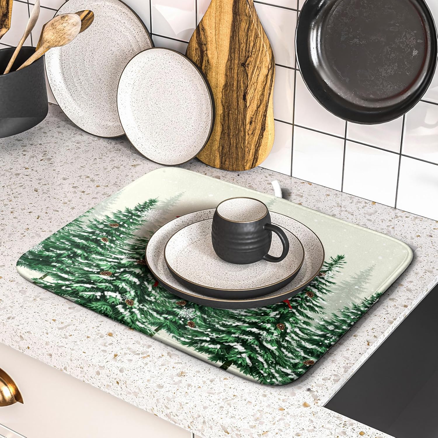 - 2【Widely Used】: The xmas trees mats for kitchen counter countertop, coffee bar, dish drain rack, great for air drying dishes, glasses, silverware, pots, pans, fruits and vegetables. It's fade resistant and never stain your kitchen counter topand keep your counter dry.