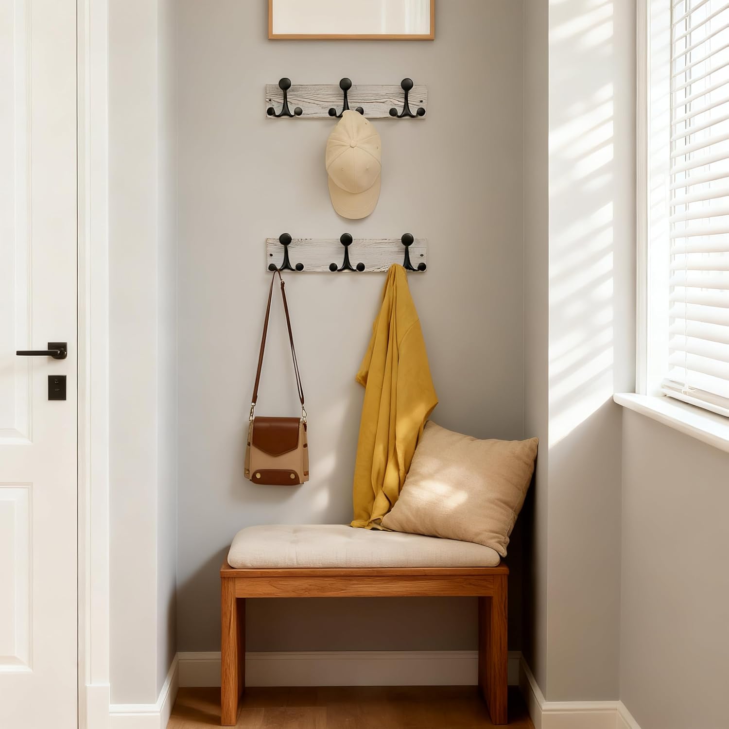 - 【Rustic Distressed Appeal】Beautiful wood finish off wall coat rack, the deliberate exposed grain creates a timeless, vintage-inspired look.