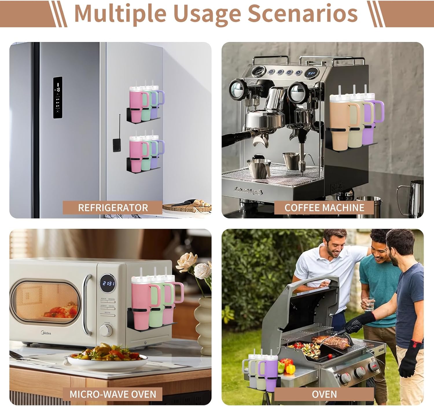 - Universal Cup Compatibility: This Magnetic Stanley Cup Holder fits Stanley 30oz/40oz, Hydro Flask, and most tumblers; dishwasher-safe components make it versatile for kitchens, offices, or garages.