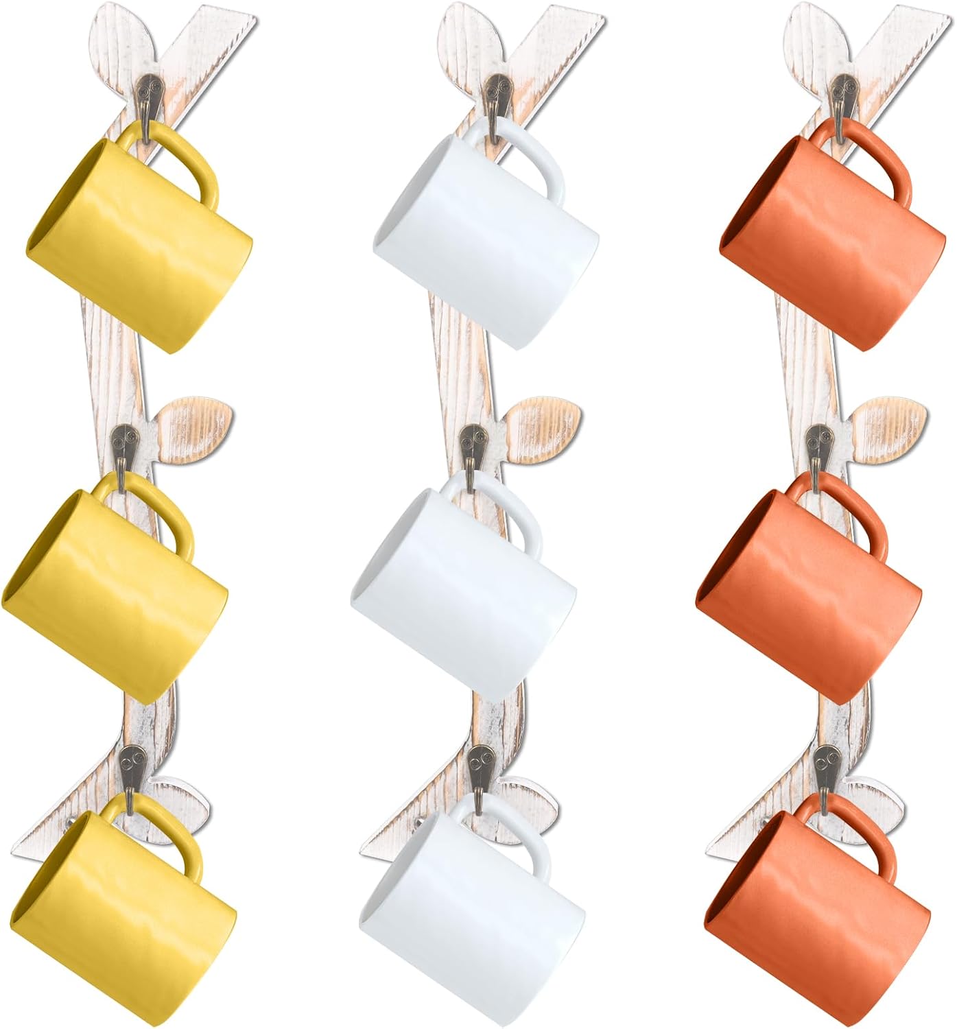 - 1.Decorative & Functional:You will receive a set of 3 vintage white wall-mounted coffee cup organizers, each measuring 16.5x1x0.5 inch. These stylish coffee cup wall racks are designed in the shape of a coffee tree, offering a simple yet elegant addition to your home decor. Whether your style is modern, vintage, or industrial, these wall mounted coffee cup holders will seamlessly blend in. Display your mug collection while adding a warm and inviting atmosphere to your kitchen, coffee bar, or dining room.
