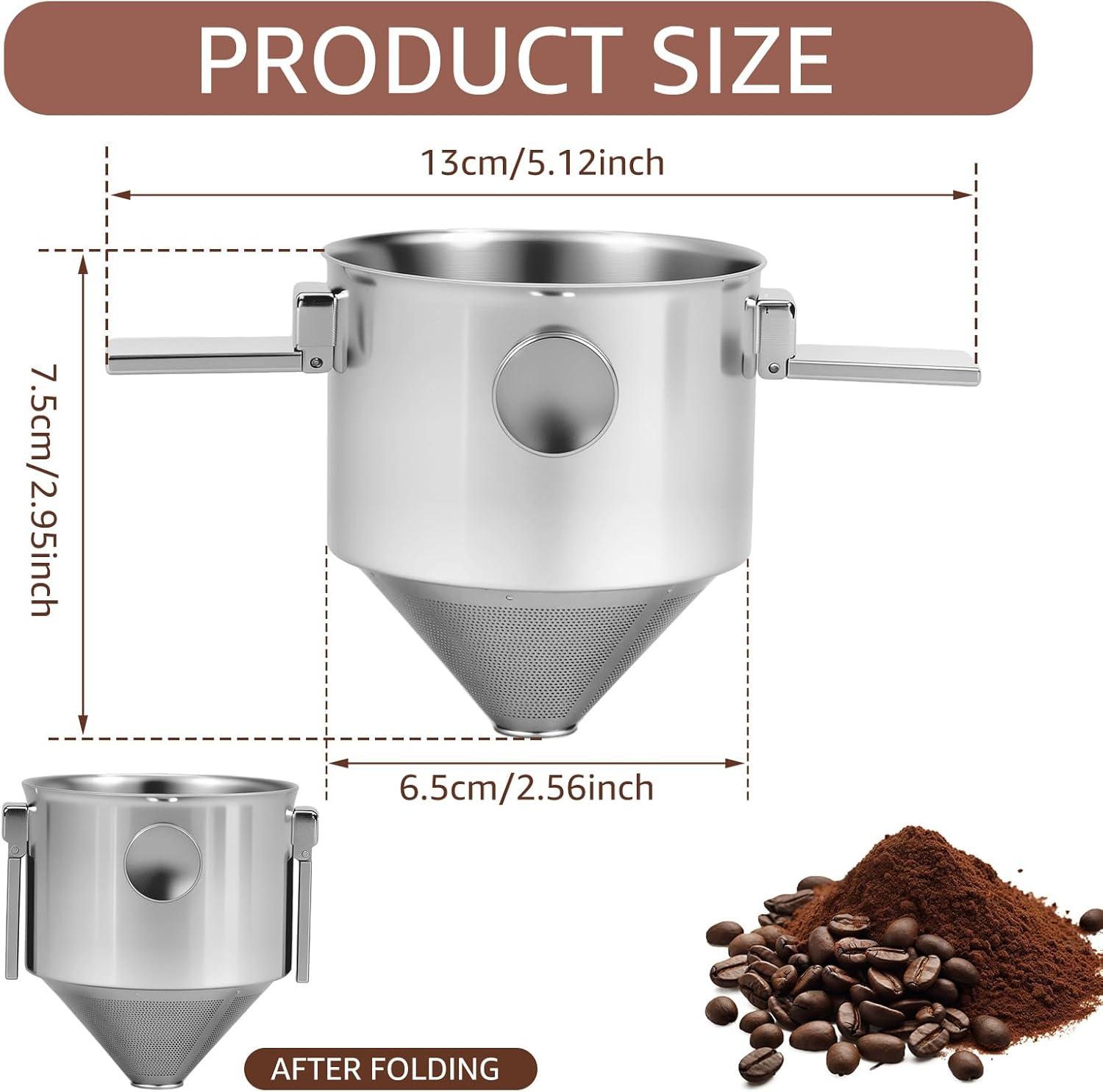 - 【Foldable Design】This coffee drip cup has a foldable handle, providing a safe and easy-to-handle solution to prevent scalding when hot water is poured in. The stainless steel coffee filter cup is designed to be reusable , reducing the need for filter paper and saving costs