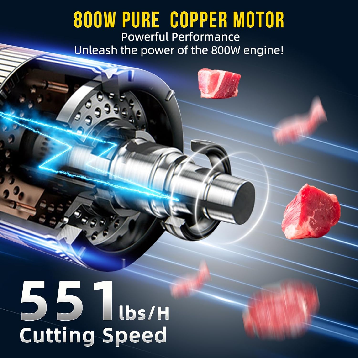 Commercial Electric Meat Cutter Machine - 800W 110V High-Power, 551LB/H Fast-Cutting Slicer with 3mm Stainless Steel Blade, Heavy-Duty for Home Kitchen, Restaurant & Supermarket