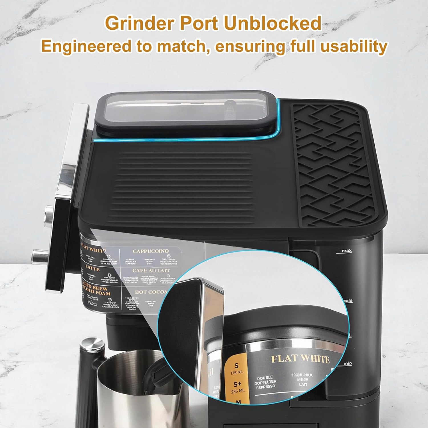 - Tailored Fit for Ninja ES601: Meticulously designed to complement the ES601 model, offering unobstructed use of the grinder opening with a seamless appearance. Adapts to the device's contours, ensuring a secure fit that prevents the mat from slipping or moving, enhancing safety during use.